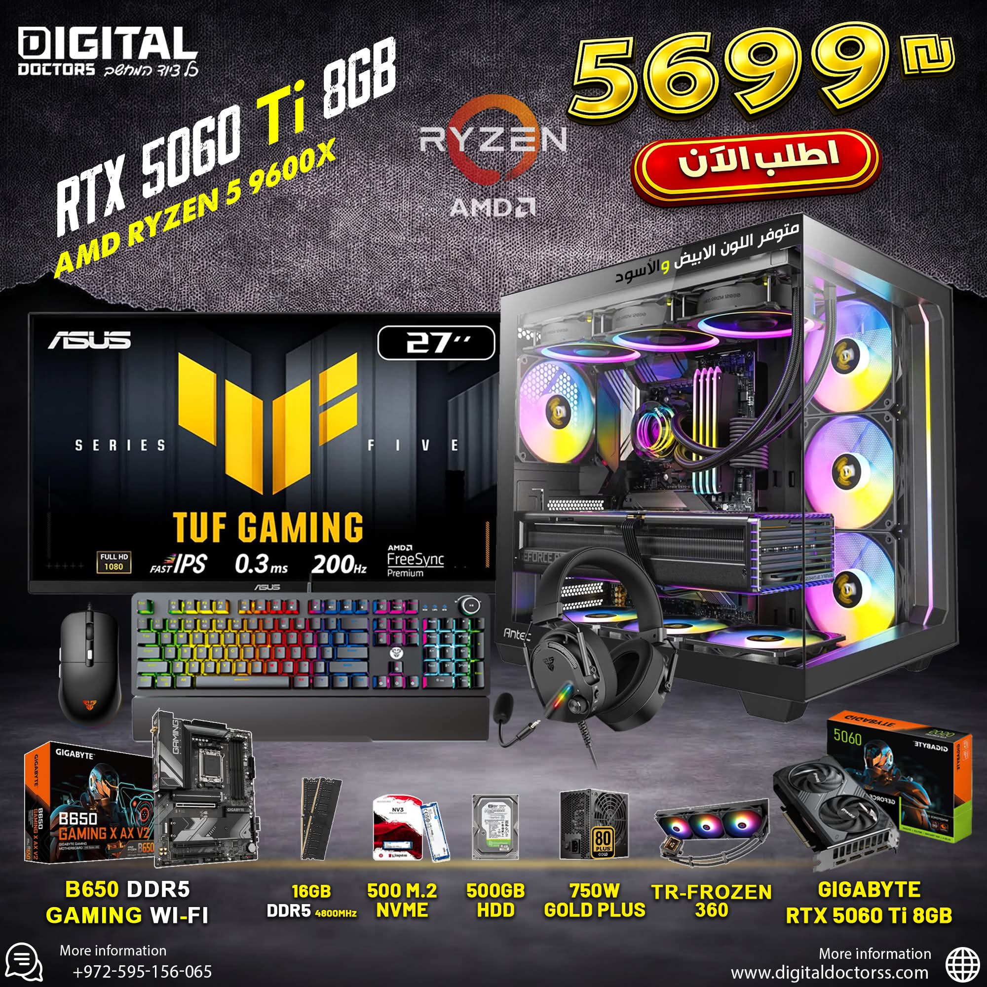 PC Gaming, R9 9900X , 32GB , RTX 5070 TI 16GB السعر الأصلي هو: ₪9,999.00.السعر الحالي هو: ₪9,199.00.